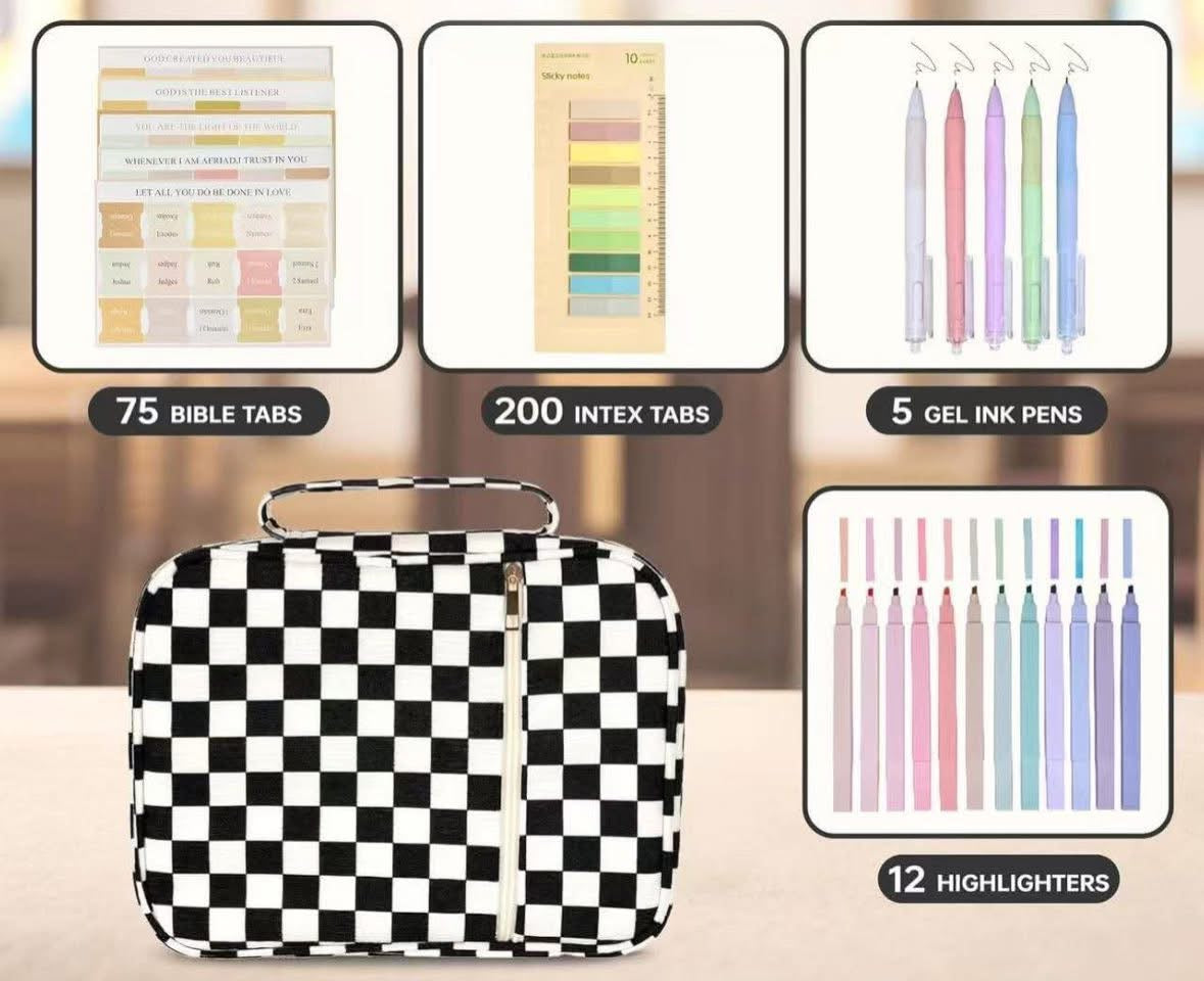 Includes: 200 index tabs, 75 Bible tabs, 12 highlighters, 5 ink gel pens